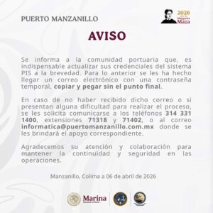 Con el objetivo de garantizar la fluidez de las operaciones logísticas y la integridad de la cadena de suministro, la Administración del Sistema Portuario Nacional (ASIPONA) Manzanillo informa sobre el fortalecimiento de sus sistemas digitales tras detectar una posible vulneración de datos.